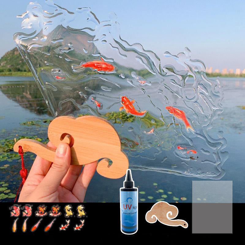 Our comprehensive kit includes everything you need to craft your own beautiful koi water fan:A pair of fan ribs (20*1.5cm) + UV glue 100g + UV lamp 6W + Koi sticker