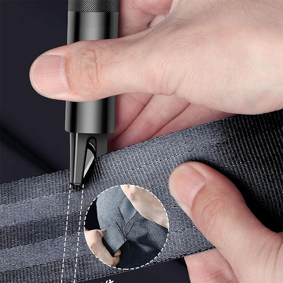 Razor-sharp blade cuts through seatbelts in an instant, ensuring a quick escape.